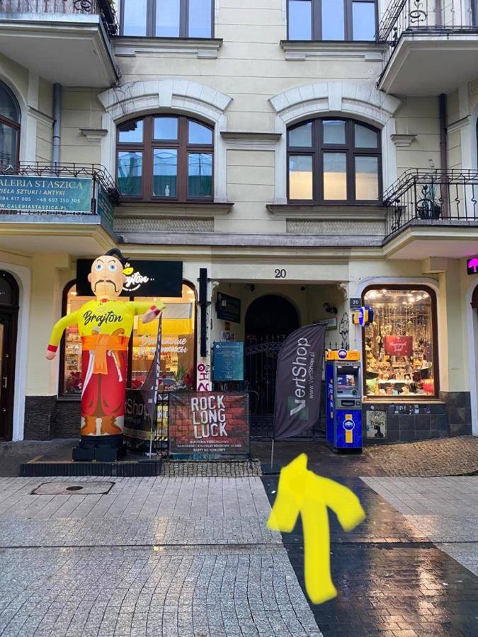 Następnie koło studia tatuażu "Na stałe" schodami do góry. Prosze otworzyć drzwi kodem do domofonu (zostanie przesłany do państwa przez booking oraz smsem gdy pokój będzie gotowy).