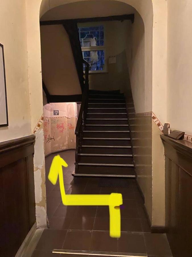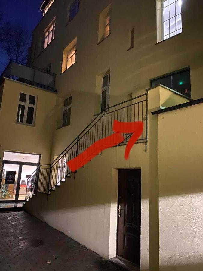 Далі біля тату-студії «Na stałe» піднятися по сходах. Будь ласка, відкрийте двері за допомогою коду домофона (буде надіслано Вам при бронюванні та СМС, коли кімната буде готова).